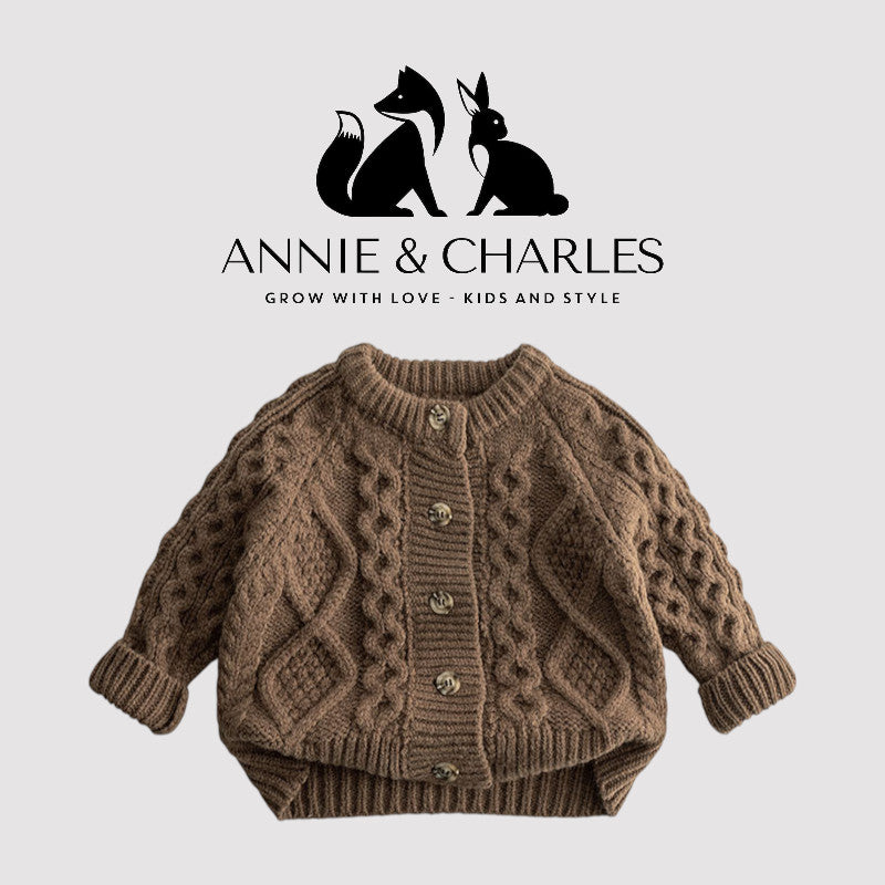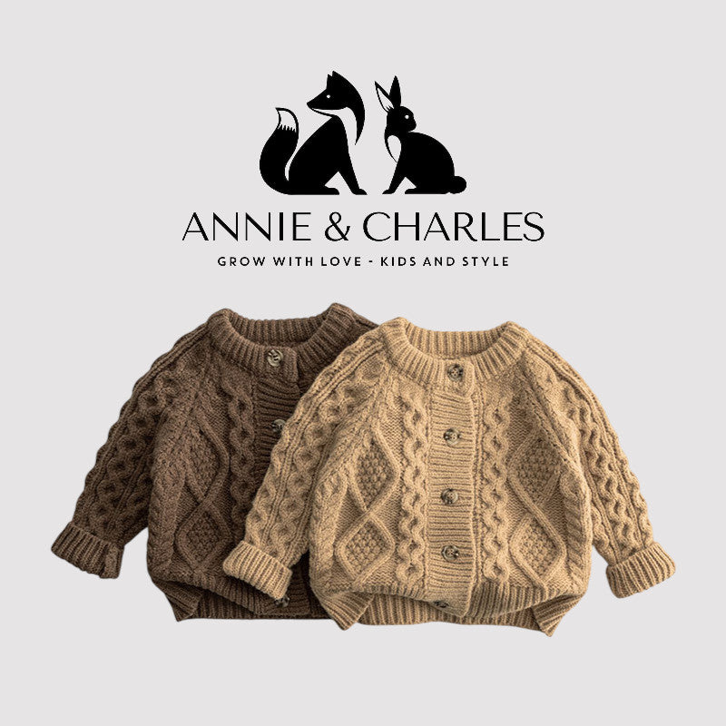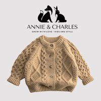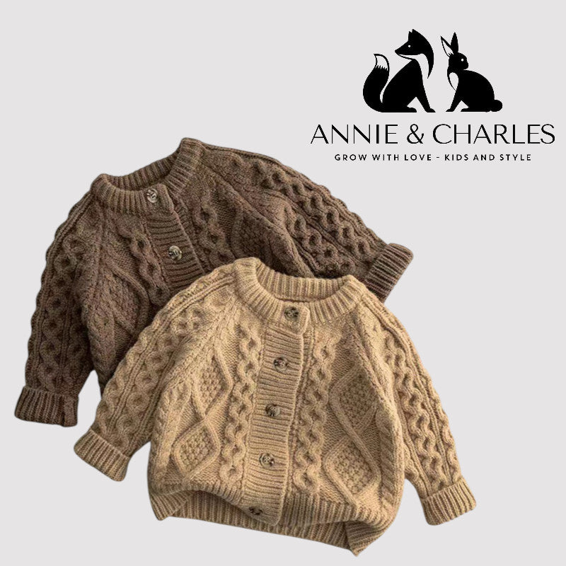 Stylische Strickjacke mit Zopfmuster für Ihren kleinen Schatz in zwei verschiedenen Farben erhältlich.